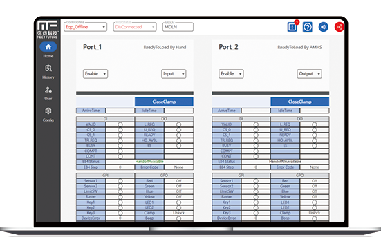 Load Port Station 配合OHT顺利获得E84通讯,进行FOUP上下料,并能够与上层系统MCS/EAP进行事件沟通。