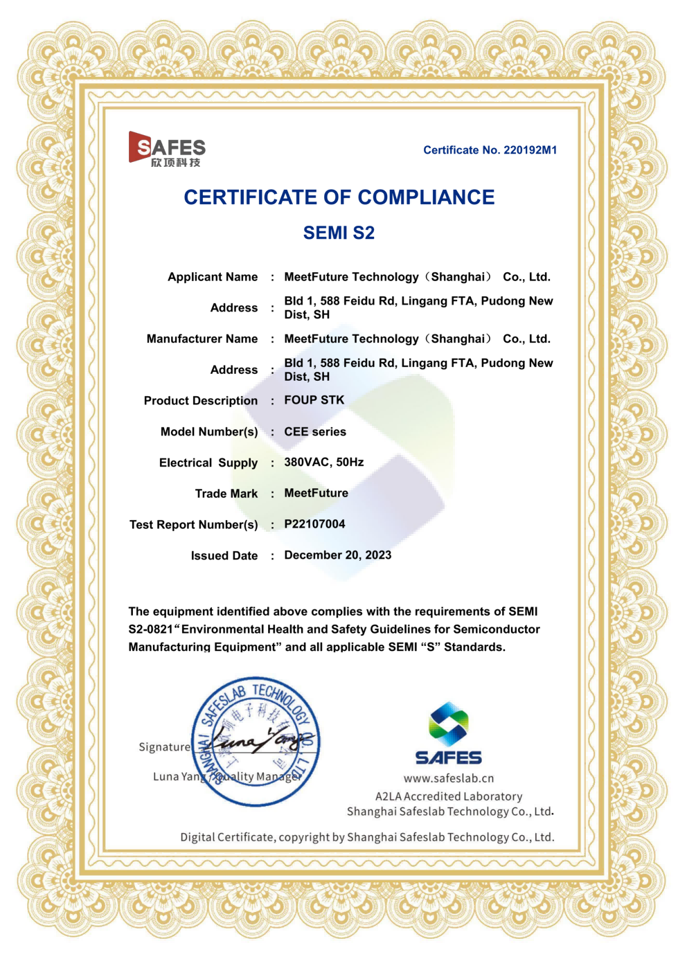 Since 2018, MiFET has obtained International Organization for Standardization (ISO) certifications for Quality Management System (ISO 9001), Environmental Management System (ISO 14001) and Occupational Health and Safety Management System (ISO 45001). In the field of AMHS product technology system, we follow the standard communication protocols for semiconductor equipment, including SEMI E37, E82, E30, E84, E10, etc., so that it is easy to connect to semiconductor fab MES system to realize data interaction.